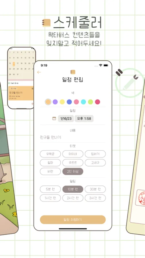 ▶ 스케줄러와 메모장 기능은 여러분들 각자의 일상을 더욱 효율적으로 관리할 수 있도록 도와줄 것입니다. 저희가 자체적으로 개발한 콘텐츠들이 여러분들의 만족스러운 앱 사용에 도움이 되었으면 좋겠습니다.