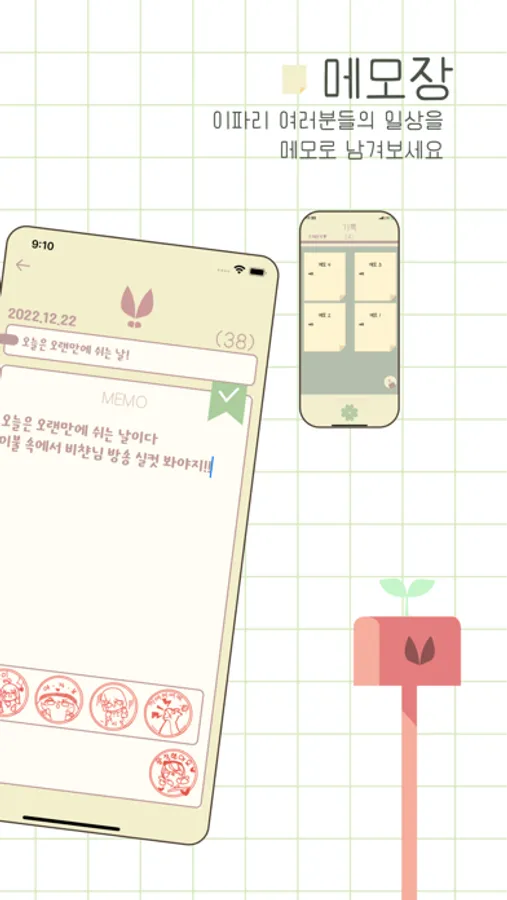이후 저희는 ‘비챤님과 이파리분들이 유용하게 쓸 수 있는 앱을 만들자'라고 목표를 확장시켜, 라니페이퍼에 여러 기능들을 추가하게 되었습니다.