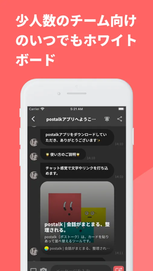 モバイルでもボードの画面を閲覧できるようになっていて、チャットでアイデアを書き出して、そのあとカードを並びかえるといった使い方も可能です。