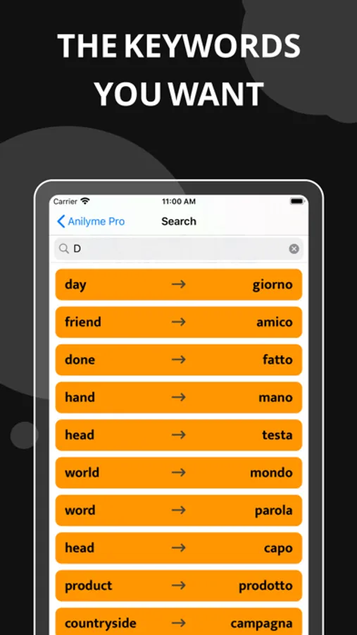 This app is for learning Italian. Refresh each group of words, write down the ones you're not familiar with, search for the keywords you want to know, and give it a try.