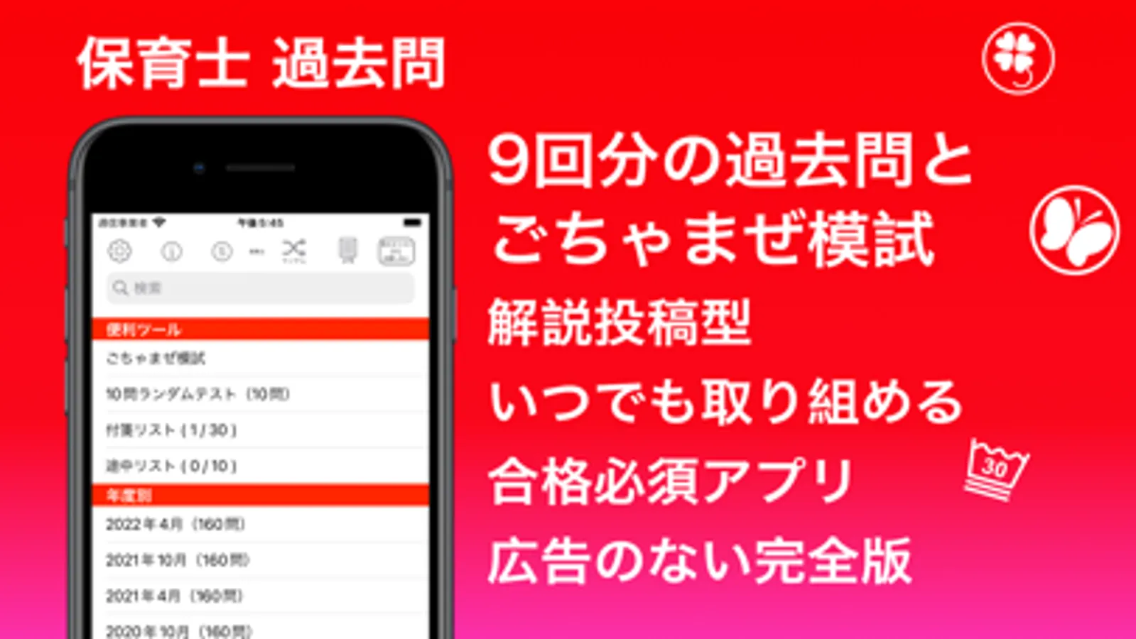 保育士の過去問をアプリ化。過去問検索やマイリスト機能。ランダム10問テストなど、国家試験を受験した時に、あったら良かったと思う機能を搭載しています。広告がなく、スムーズに勉強することができます。更新も有料版を優先して行います。