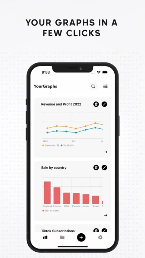 The YourGraph mobile application allows you to create folders to organize your charts. Name your folders and sort them according to your preferences to quickly find the chart you are looking for. This makes managing your diagrams easier and more efficient.