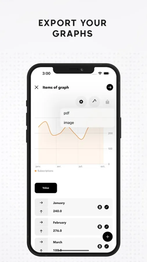 Your iCloud account is compatible with the YourGraph mobile application. You can save your data in iCloud so that you can access it from any device connected to your iCloud account. This ensures the security and availability of your charts, no matter where you are.