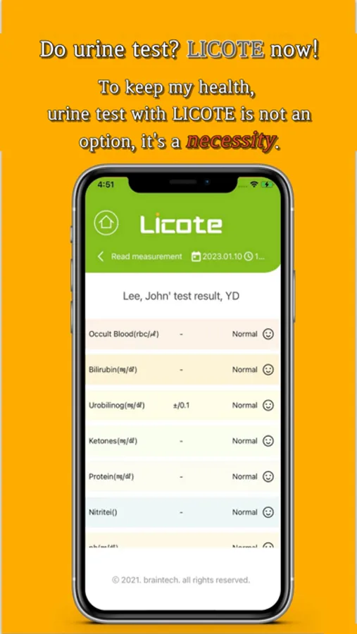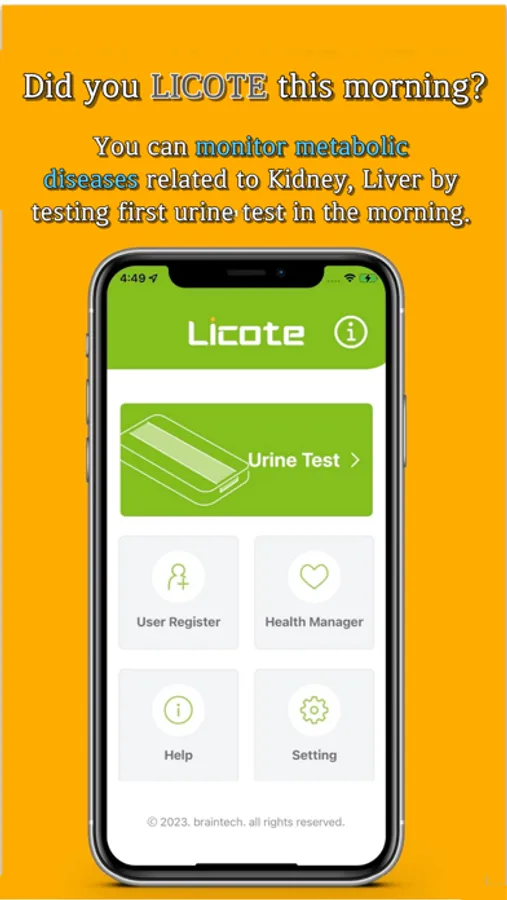 Licote, the personal IVD analyzer, developed by Braintech Co., Ltd., consists of a device that detects chemical changes in the dipstick, and a smartphone application that analyzes and shows test results.