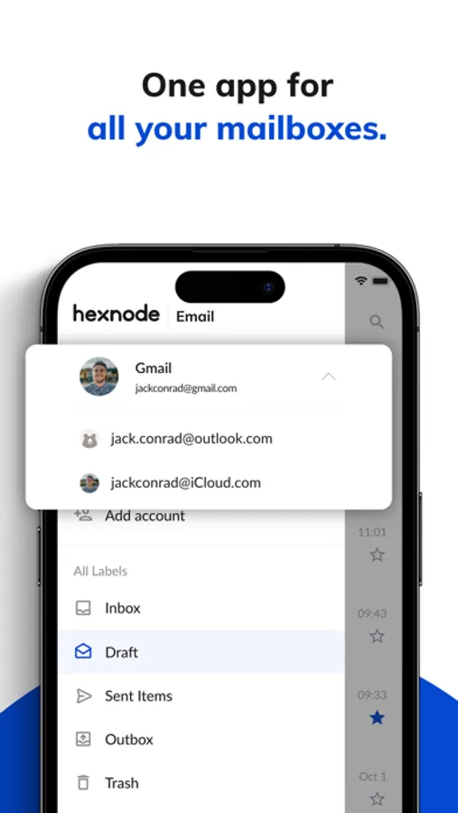 Hexnode Mail helps you bring all your mail accounts to one unified space while providing real-time notifications, managing multiple accounts and getting superior management capabilities with Hexnode UEM.