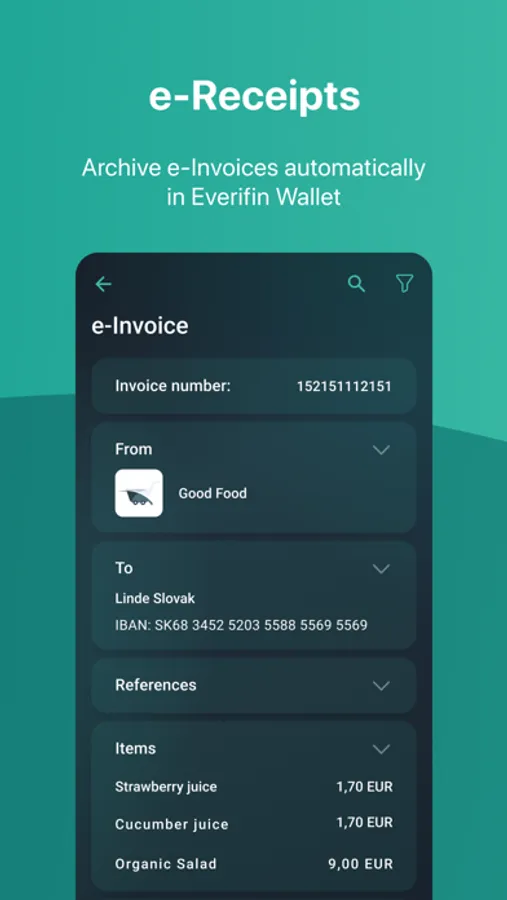 Account-to-account payments in your store with EU-wide coverage. Connect your bank accounts, scan the QR code and pay cashless. Everifin wallet is your safe alternative to cash or card.