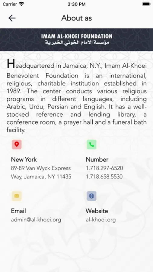 It also provides the following services for those living in North America, such as marriage and divorce, funeral , setting up mourning councils, religious lectures, providing counseling and advice.