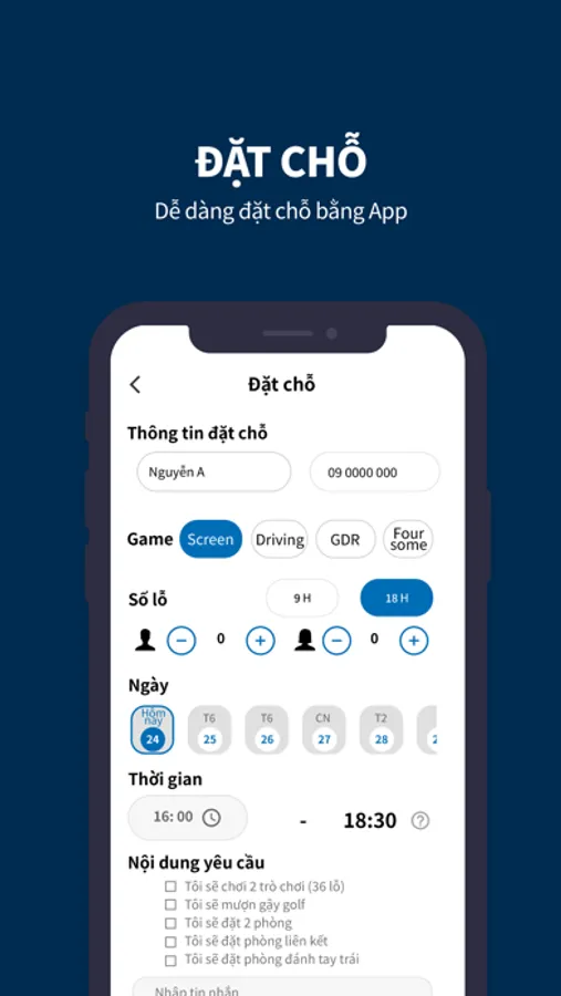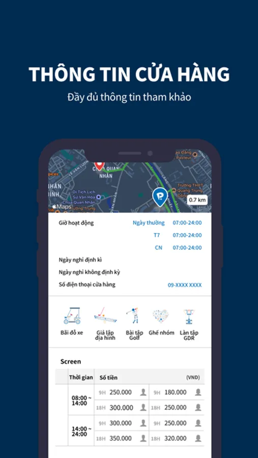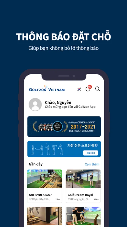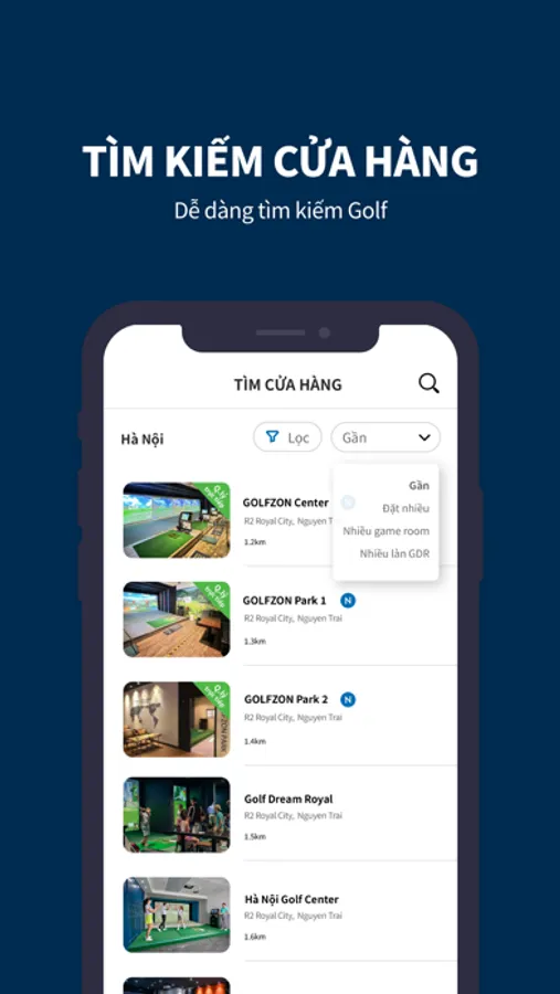 1. Tìm kiếm chỗ chơi Golf trên màn hình gần bạn