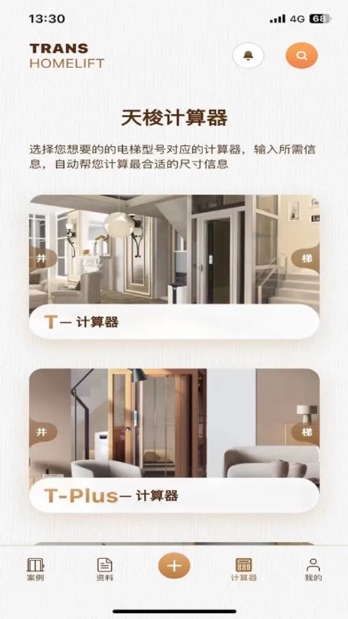 2.用户可以使用天梭寻见App的计算器功能对轿厢尺寸和井道尺寸进行计算。