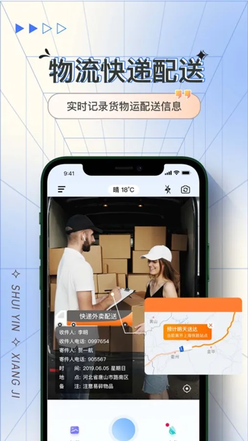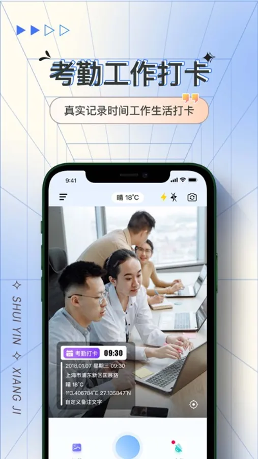 * 实时更新:水印可自动更新为实时的日期、地点、天气等信息
