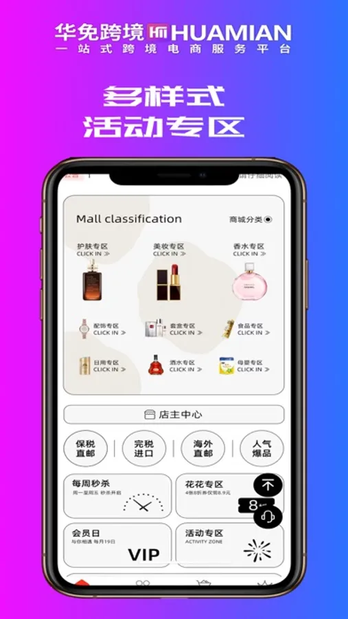 华免跨境新零售,汇聚全球甄选好物,海关监管,正品保障,让您不出国门即可享受零关税购买全球免税商品,线上结合线下联动销售,进入商城即可下单也可在线下展示店通过”扫码购”快速购买