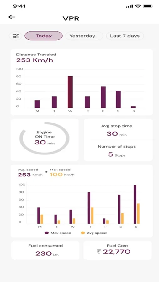 Check Live status- Location, Speed, Stops, Distance Covered, AC Status, Engine On time, Idle hrs and lot more