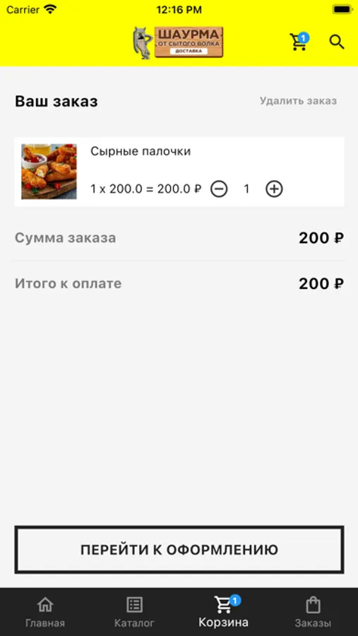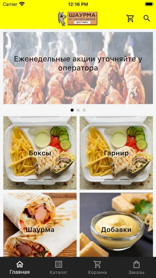 мобильное приложение службы доставки Шаурма от Сытого Волка