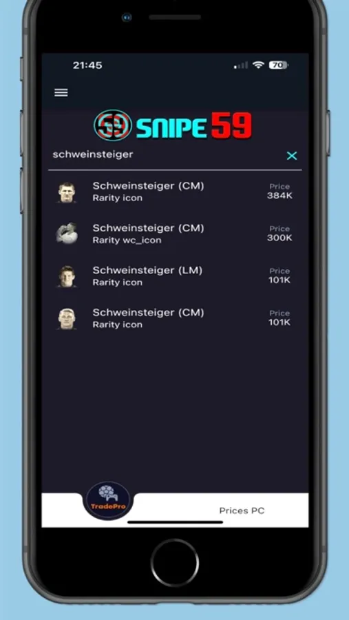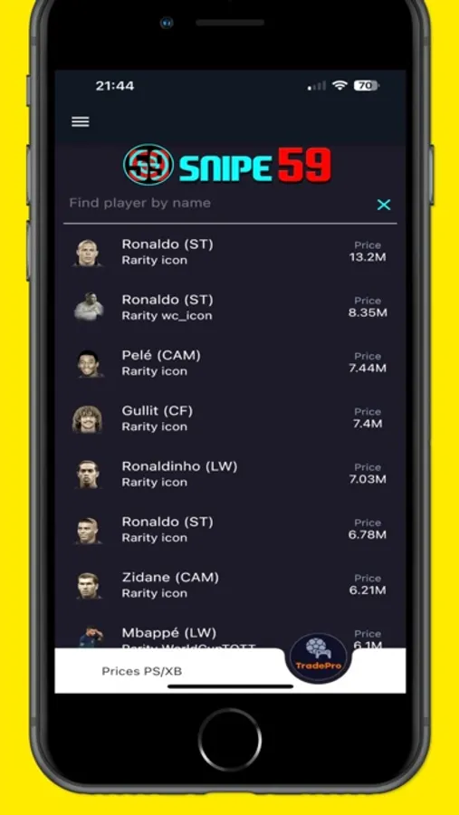 This apps shows current market prices of all player cards of the FUT market for Playstation, Xbox and PC market.