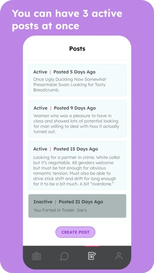 - Posts are sorted by timestamp: So you know the person you're messaging is still active