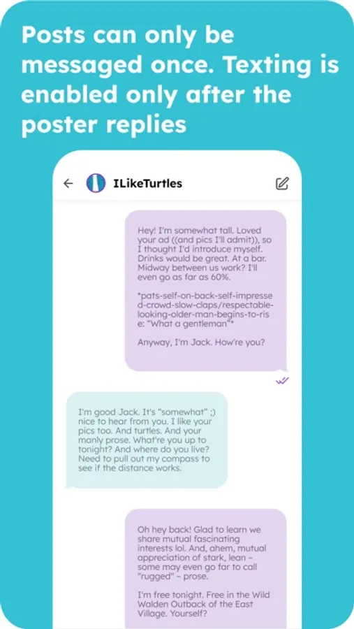 - One Initial Message Per Post: Users can’t message you again until you reply. That means thoughtful messages. And no pestering