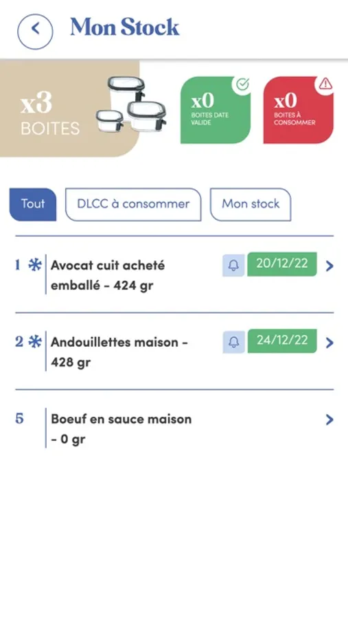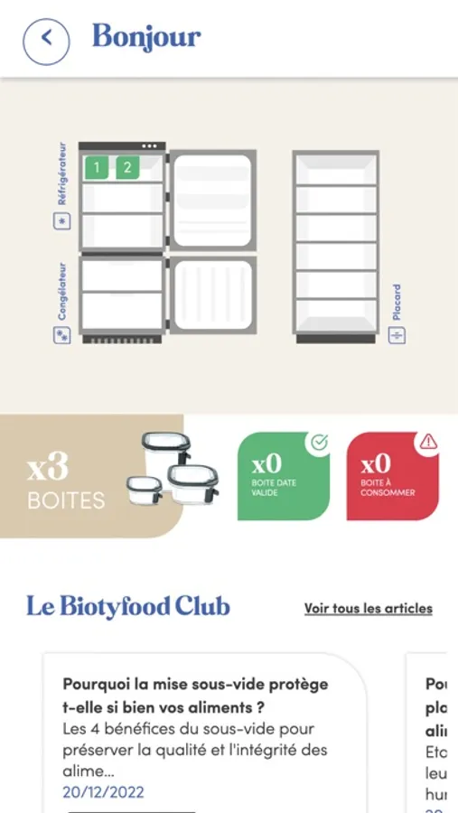 • Sa base de données recense plus de 1000 aliments avec leur temps de conservation au réfrigérateur, au congélateur et à température ambiante (placard).