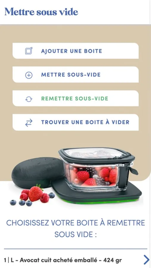 • Pèse le contenu de votre boite au moment où vous exercez la pression sur le couvercle pour lancer la mise sous-vide.