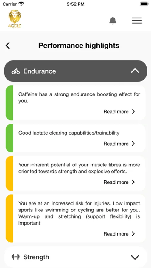Overall, the 4GOLD DNA app is a powerful tool that offers you a personalized approach to your health and performance. With our advanced technology, customized insights, and expert support, you can achieve your goals and reach your full potential.