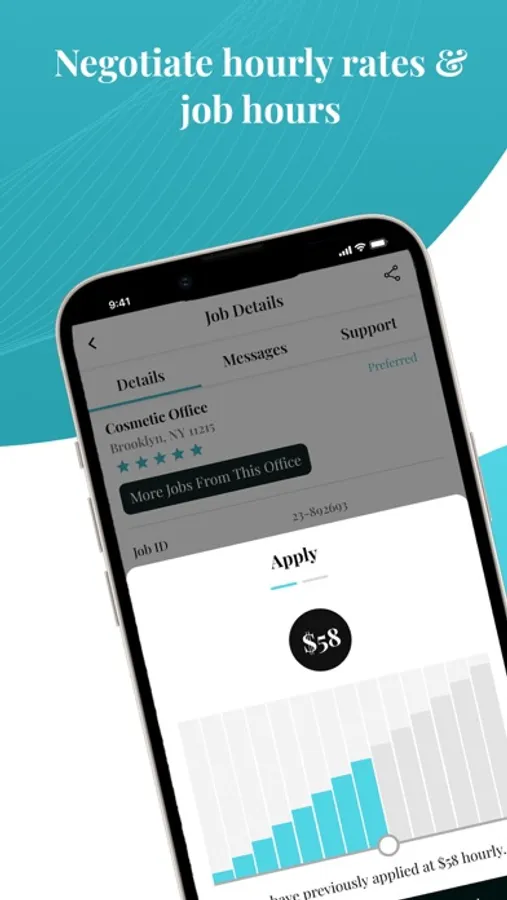 Apply at an office's hidden selected hourly rate and be confirmed on the spot! To qualify for an automatic confirmation, professionals must complete 5 jobs and maintain a 3.5-star rating or receive a direct request from a preferred office.