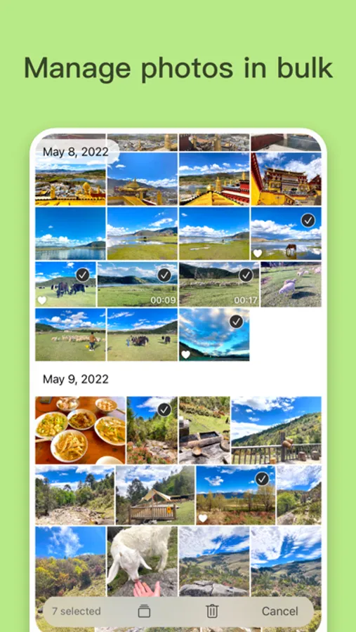 - Quickly view photos of selected dates, can browse photos by year, month and day
