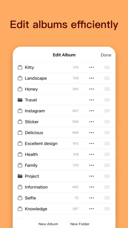 - Supports renaming, moving, deleting and sorting for albums and folders