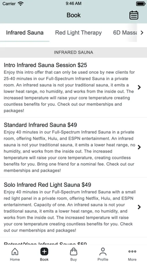 Download the dtXfy app to plan and schedule your infrared sauna, red light therapy and 6D touchless massage lounger sessions! From this mobile app you can view schedules, book appointments, view ongoing promotions, as well as view our location and contact information. Optimize your time and maximize the convenience of booking your appointments from your device! Get on our wavelength today!