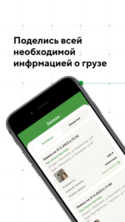 Грузоперевозчики предлагают свою цену за их выполнение. Вы выбираете наиболее выгодное предложение и отслеживаете статус доставки посылки.