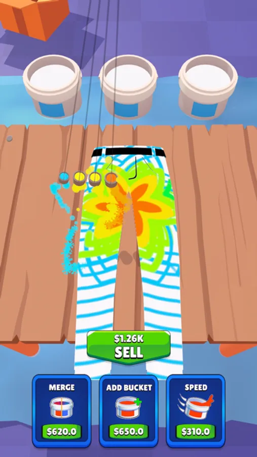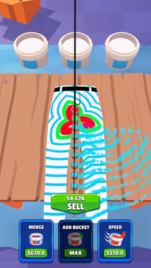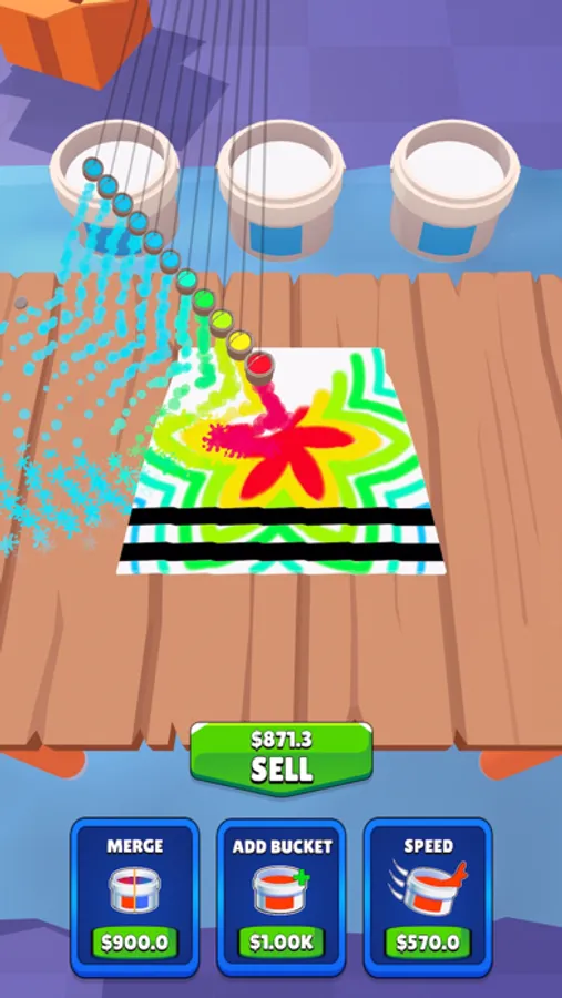 - Upgrade the speed, add buckets & merge the colors to make different ones with the money you earned.