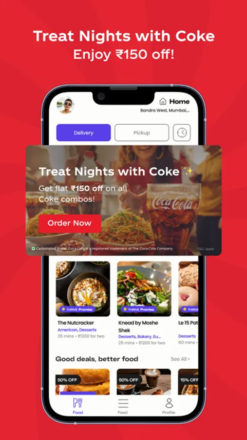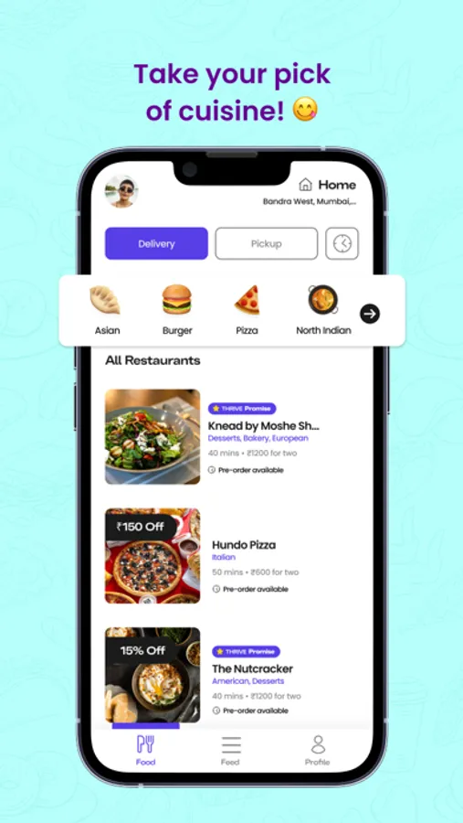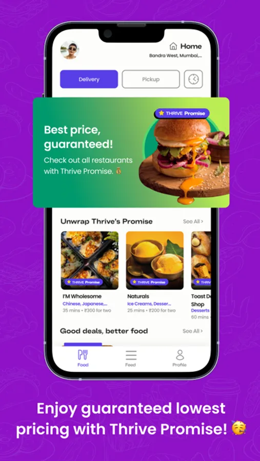 Whether it’s breakfast, lunch, snacks, dinner or dessert. Whatever you’re craving, be it pizza, burgers, biryani, salads, coffee or chai. Thrive brings to you the favourites for all - Domino’s, Sbarro, Chinese Wok, Hundo, Apsara, Naturals, Le15 and 3000+ other restaurants across Mumbai.