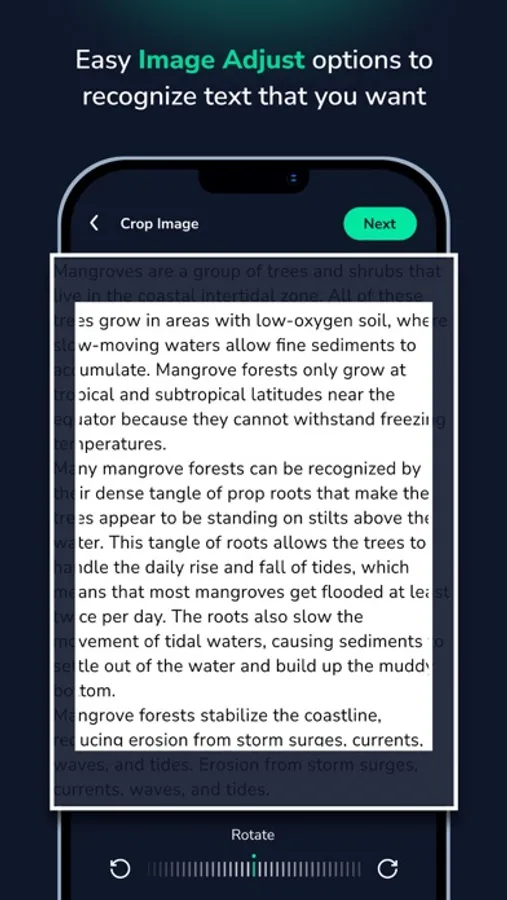 Effortlessly capture documents using your device's camera or import them from your gallery. Crop and enhance the document to improve readability. Utilise the recognition feature to extract all text from the document. Translate the extracted text, share it, copy it, or convert it to speech. Create PDFs for convenient storage and access. Simplify your document management tasks with Text Extractor.