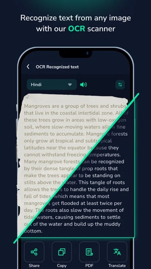 Effortlessly extract text from scanned PDFs, images captured using the camera, or images from your gallery. Our advanced OCR technology accurately recognizes text and provides you with editable text output. Translate the extracted text to any language, share it with others, copy it, or convert it to speech for a seamless reading experience. Customize your text settings such as line spacing and alignment preferences to suit your reading comfort.