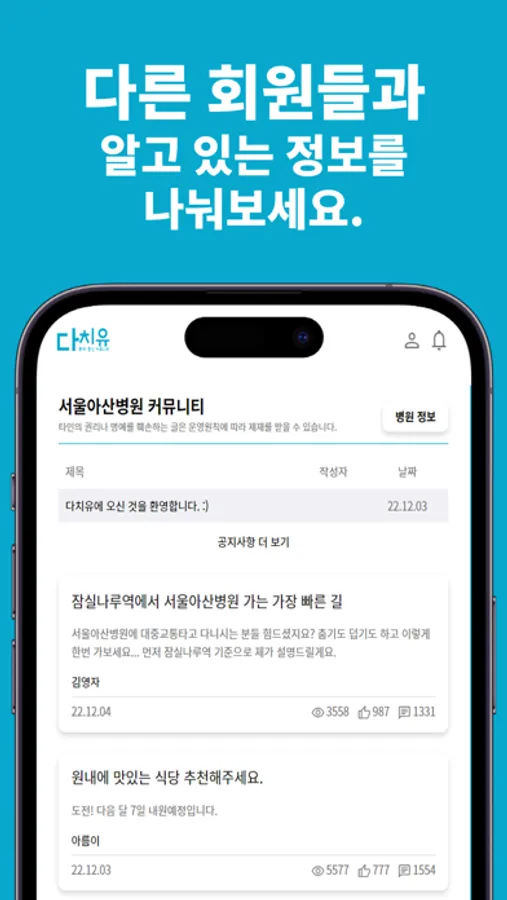 대학병원 후기, 질환 정보 공유, 중고거래 필수 앱