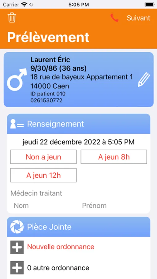 Le guide de prélèvement (pour chaque analyse) est accessible dans le smartphone et mis à jour en temps réel avec le laboratoire.