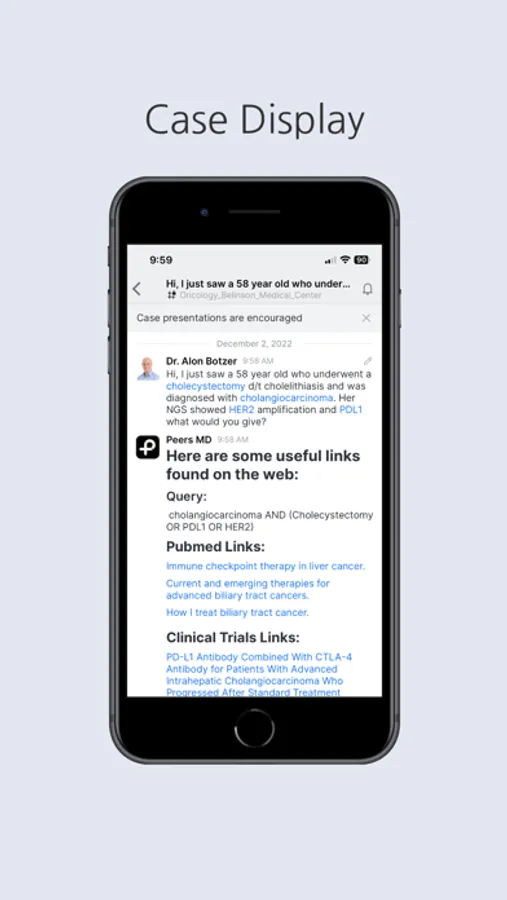 A platform for medical professionals that enables easy and secure cross-institutional consultations as well as AI based insights learned from untapped data for improved quality of care as well as early recognition of medical trends.