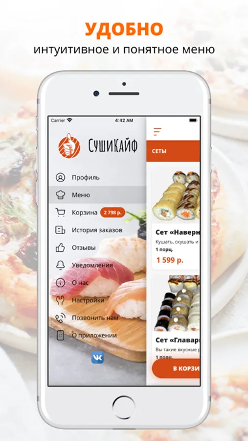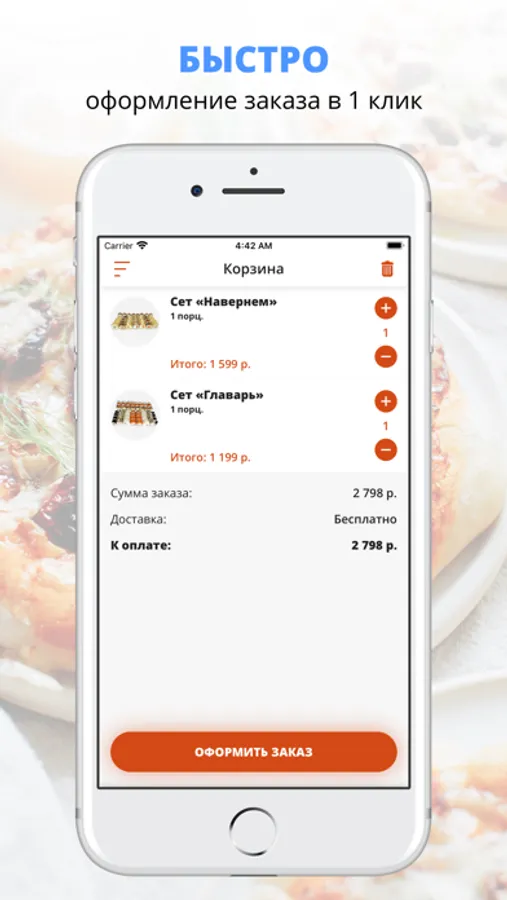 Скачивайте наше приложение, оформляйте заказ и наслаждайтесь любимой едой, где бы Вы ни были! Приятного аппетита!