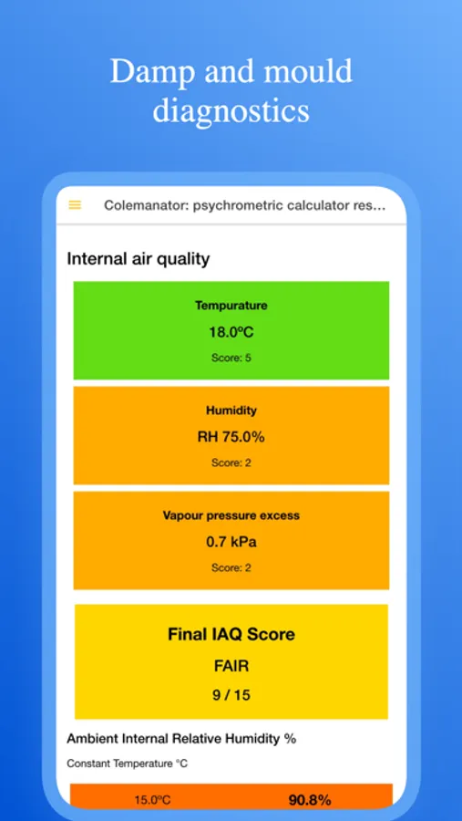 The Colemanator APP is intended to be used by building surveyors, home inspectors, drying specialists, landlords and even homeowners to determine air quality in circumstances where damp, mould and condensation are considered a problem.