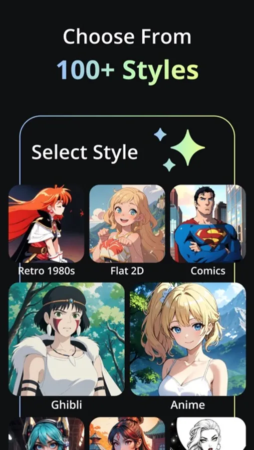 AniGenie offers a plethora of artistic styles to explore, providing endless possibilities for your creative vision. Craft AI-generated art in styles such as Realistic, Anime, Painting, Pixel Art, Cyberpunk, Poster Art, Line Art, Comic, Vintage, Glass Art, Paper Cut, Graffiti, and many more!