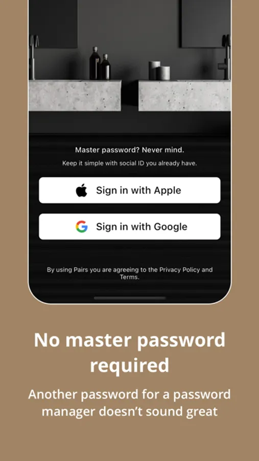 * Serious security: Pairs protects your data in a super strong AES 256-bit encrypted vault.