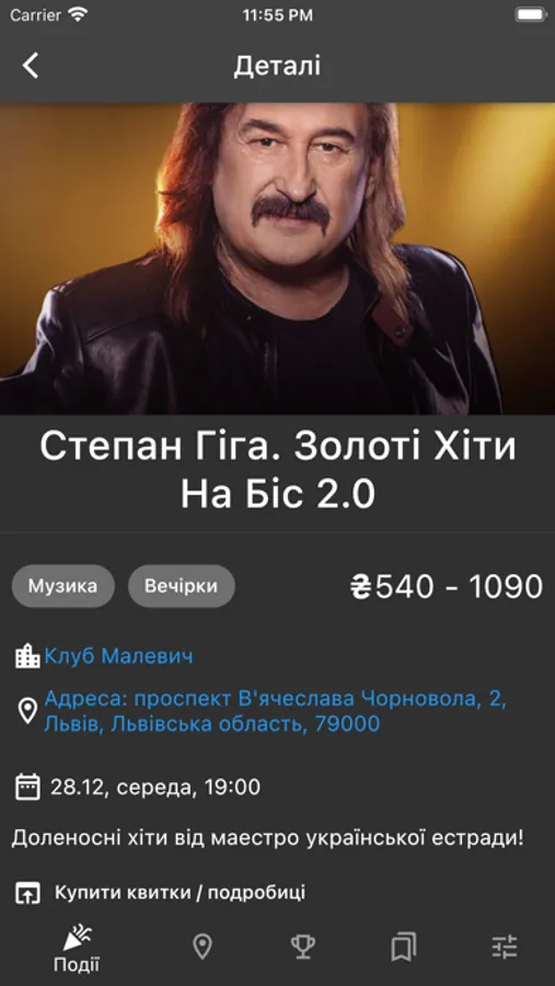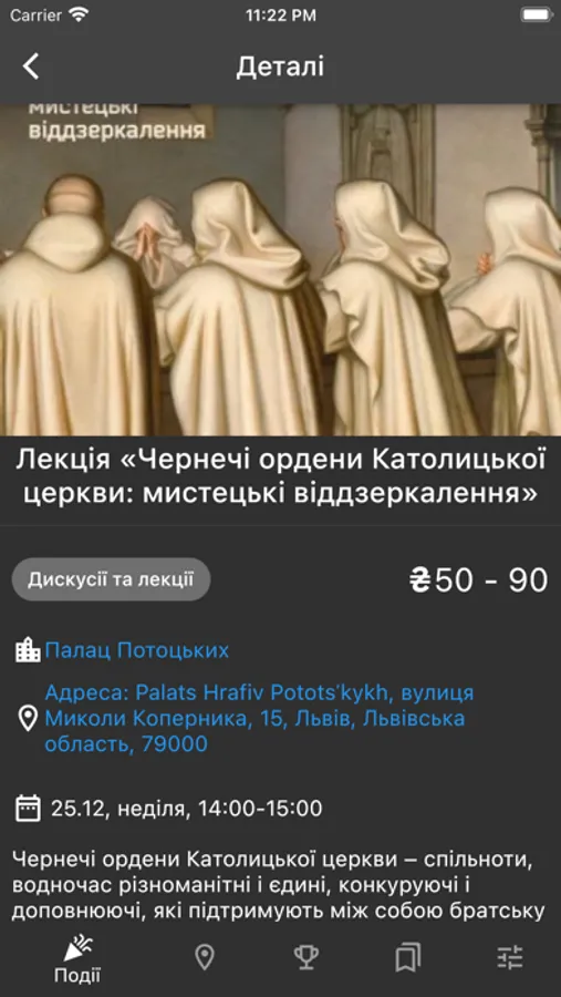 Я знаю про всі події – і з радістю поділюсь знаннями з тобою. Підкажу як добратись, нагадаю про подію та й взагалі - всіляко допоможу поринути у світ мистецтва, близького саме твоєму серцю.