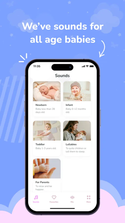 - 6 calming categories: Infants, Newborn, Toddlers, Lullabies and Parents