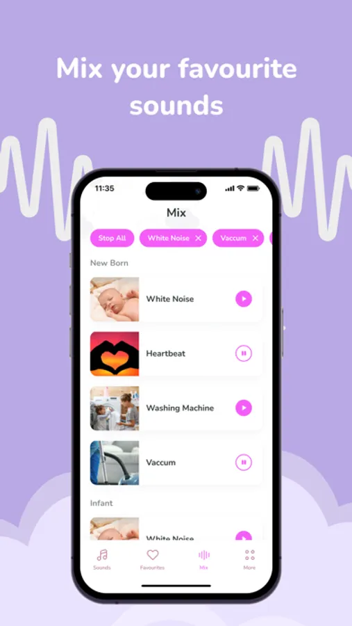 The following sounds to sleep are waiting for you in our baby sleep machine app: