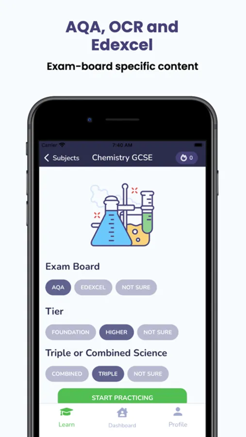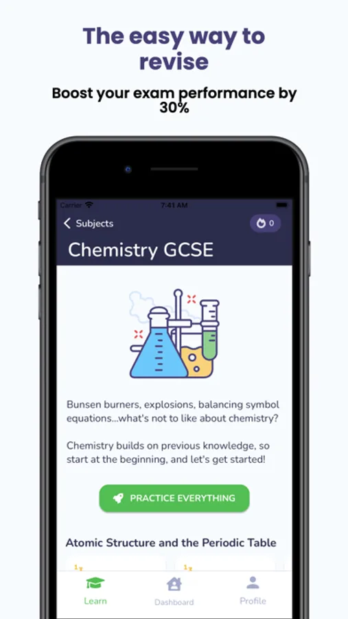 Wisey is a revolutionary revision app for GCSE Chemistry to get your exam-ready. We have hand-crafted 2000 chemistry questions designed to test you on all areas of the curriculum, from moles to molecules.