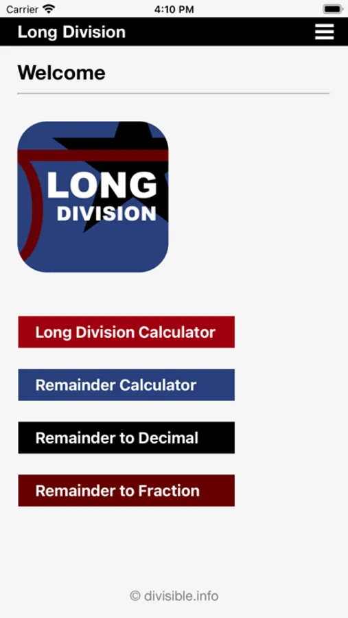 Our Long Division Calculator App allows larger numbers and has a lot more options than your standard division calculator app.