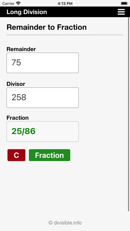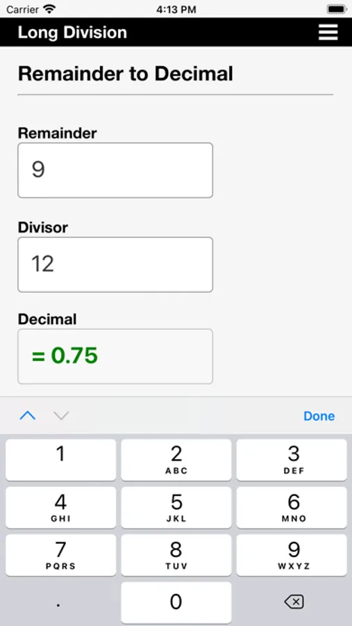 Many division problems result in an answer with a remainder. For this reason, the app also includes a "Remainder to Decimal Converter" and a "Remainder to Fraction Converter."