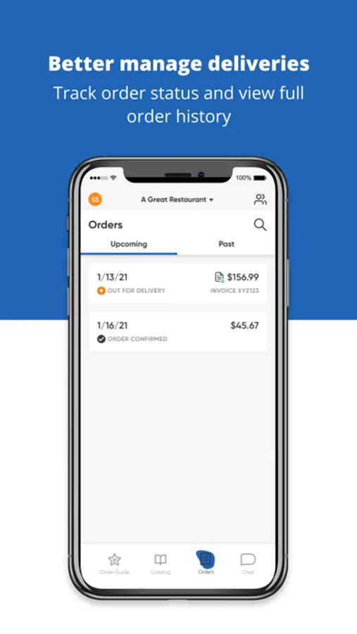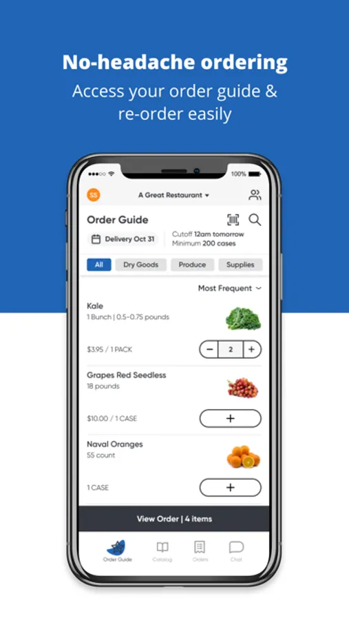 Our mobile app lets you search our complete product catalog, manage and update your ordering guide, and buy what you need at the moment you need it. It’s part of our commitment to giving you an ordering experience you’ll love.