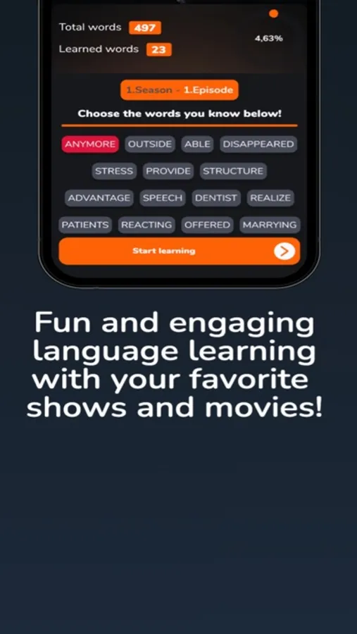 But the best part? Our app provides you with a percentage of coverage for each movie, so you can track your progress and see how much of the movie's language you've mastered. So whether you're a movie buff or just looking for a new and exciting way to improve your English skills, our app is the perfect choice for you. Download it now and start learning!