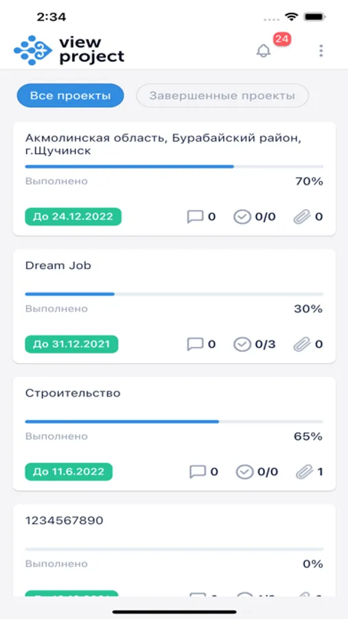 Мобильного приложение для получения уведомлений, просмотра проектов пользователя и скачивания отчетности;