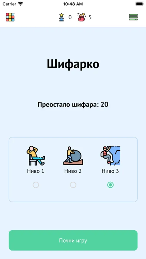 Šifarko - Druga u nizu igara u sklopu aplikacije predstavlja spoj logike, kombinatorike i sreće koja će korisnicima pružiti priliku da se zabave sami ili u društvu. Pronadjite pravi balans izmedju zamene novčića za pomoći ili nove šifre.