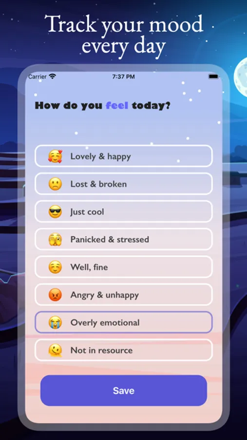 Focus, clear your mind, listen to the tunes and try to focus on the things that matter to you. In the motivation section, you will always find a smart quote that will keep your fighting spirit going. In the mood tracker, you can track your mood every day and its changes during the meditation period.